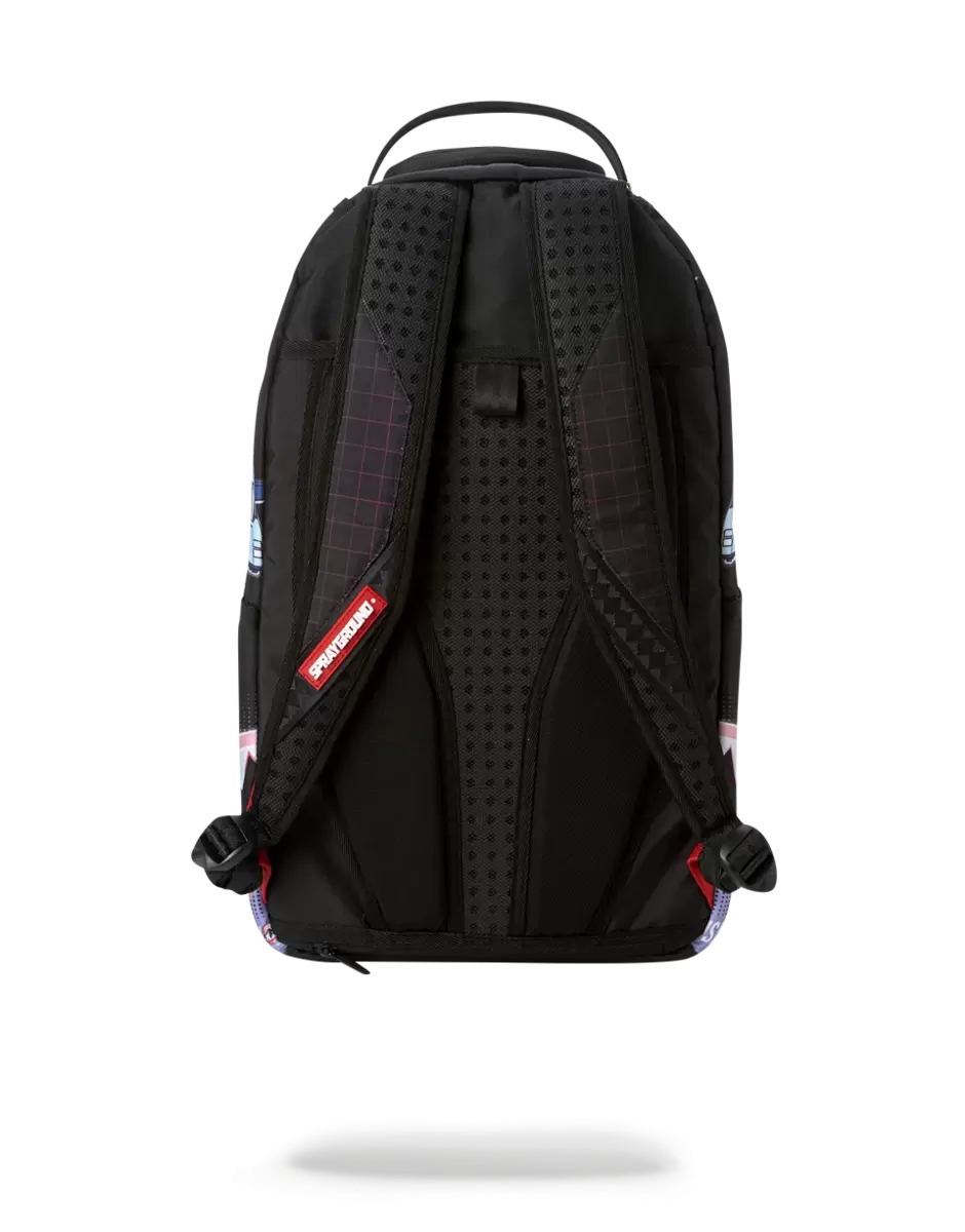 Dimensions: 18″ x 6″ x 11.5″ Front zipper pocket Side pockets Zippered Stash pocket Separate velour sunglass compartment Ergonomic mesh back padding Adjustable Straps for custom sizing Black lightning bolt zippers with metal hardware Metal “Sprayground Authentic” badge Slide through back sleeve connects to carry-on luggage to free your hands