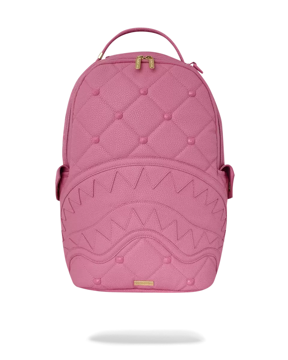 Pink quilted with bear face studs. Pink enamel & gold hardware details