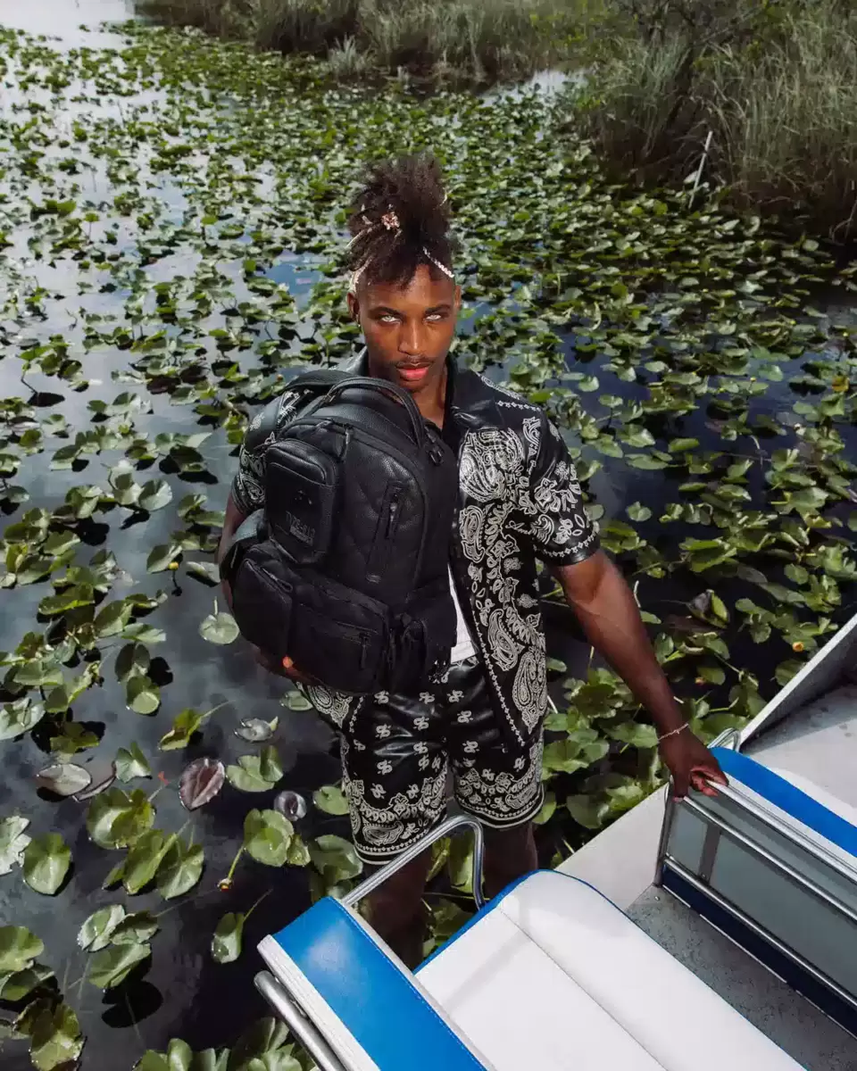 Dimensions: 18″ x 6″ x 11.5″ Front zipper pocket Side pockets Zippered Stash pocket Separate velour sunglass compartment Ergonomic mesh back padding Adjustable Straps for custom sizing Gold zippers with metal hardware Metal “Sprayground Authentic” badge Slide through back sleeve connects to carry-on luggage to free your hands