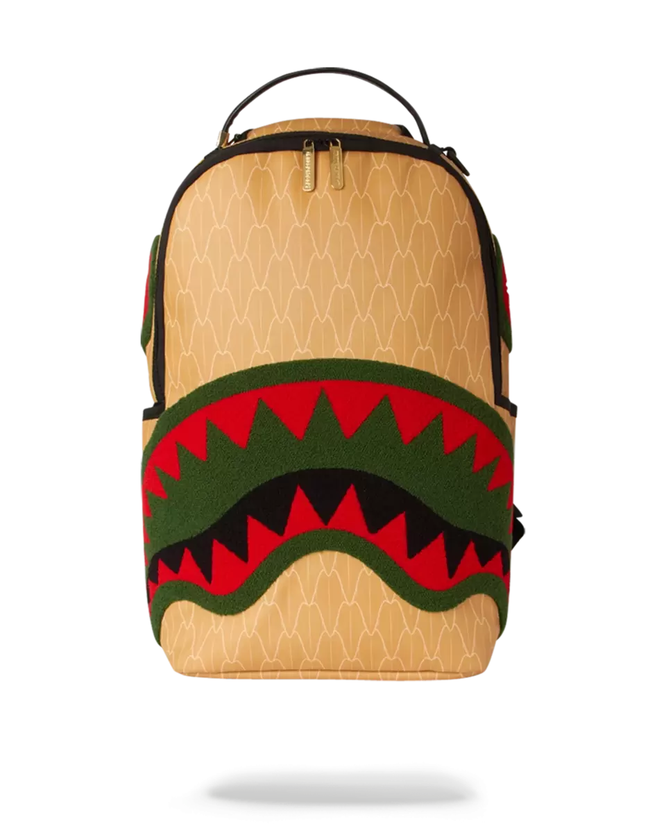 Dimensions: 18″ x 6″ x 11.5″ Front zipper pocket Side pockets Zippered Stash pocket Separate velour sunglass compartment Ergonomic mesh back padding Adjustable Straps for custom sizing Gold zippers with metal hardware Metal “Sprayground Authentic” badge Slide through back sleeve connects to carry-on luggage to free your hands