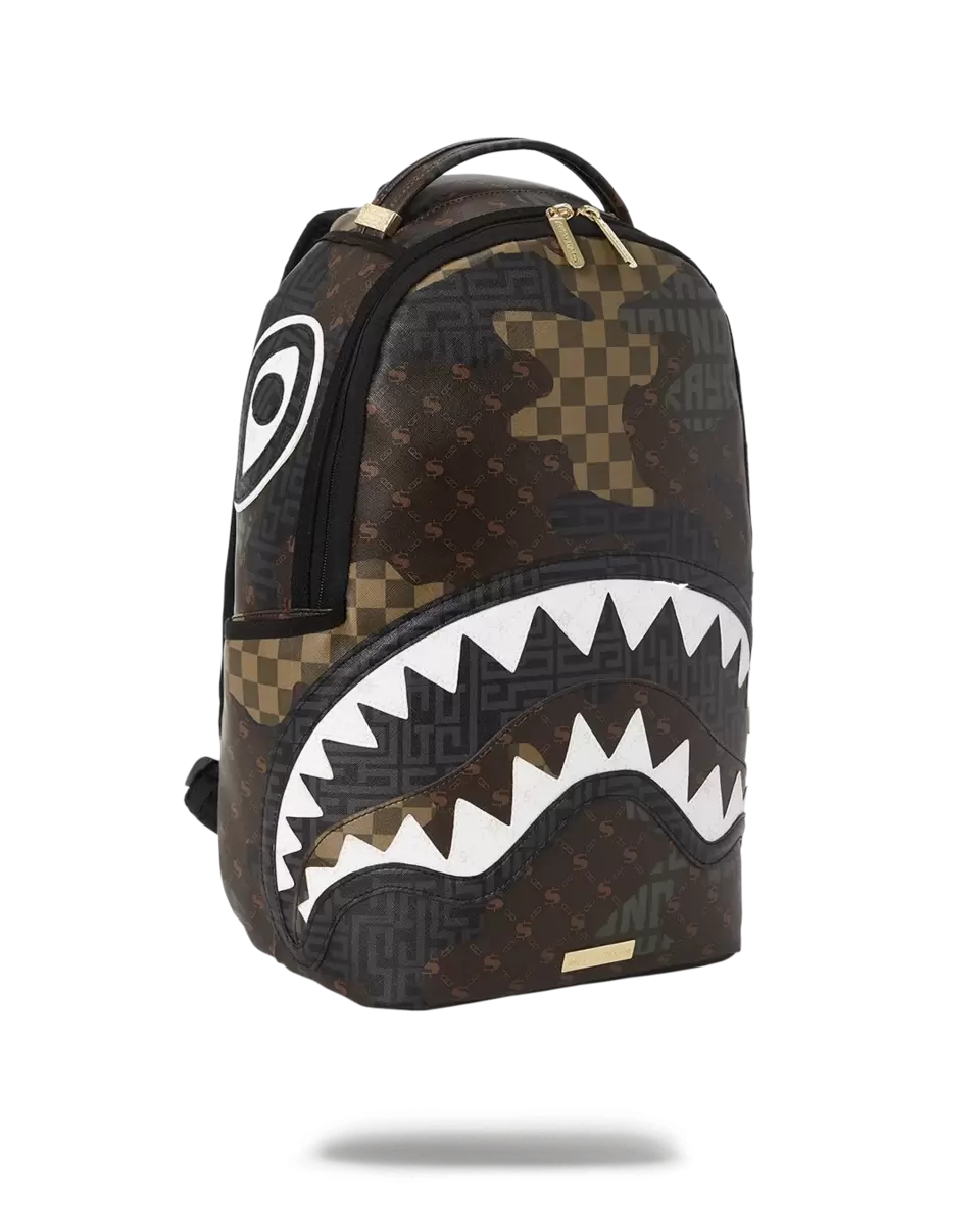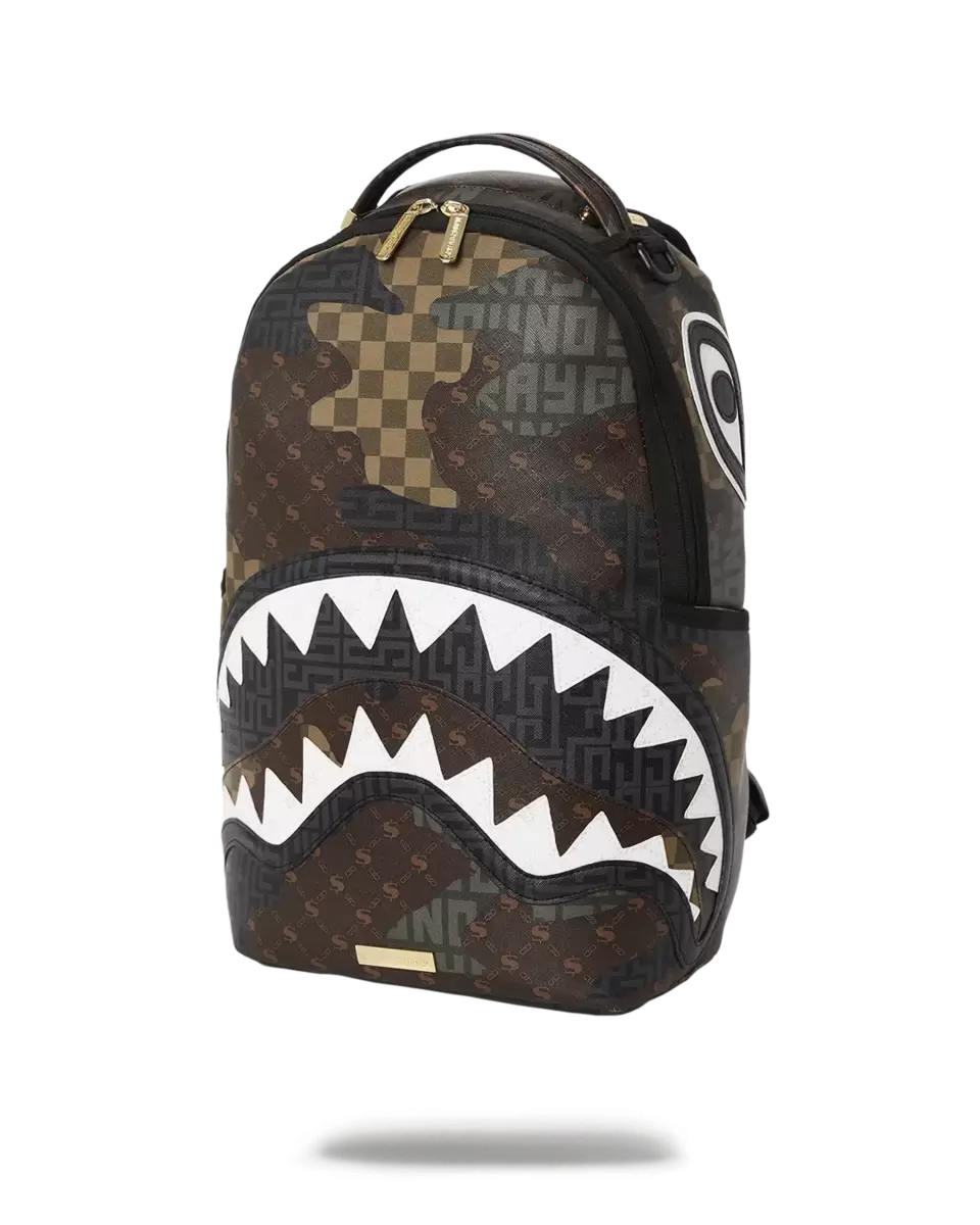 Dimensions: 18″ x 6″ x 11.5″ Front zipper pocket Side pockets Zippered Stash pocket Separate velour sunglass compartment Ergonomic mesh back padding Adjustable Straps for custom sizing Gold zippers with metal hardware Metal “Sprayground Authentic” badge Slide through back sleeve connects to carry-on luggage to free your hands