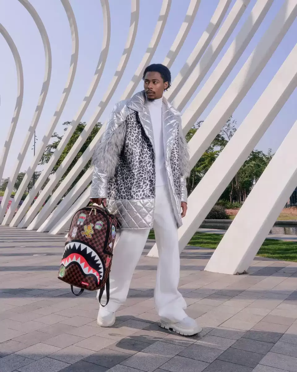 Dimensions: 18″ x 6″ x 11.5″ Front zipper pocket Side pockets Zippered Stash pocket Separate velour sunglass compartment Ergonomic mesh back padding Adjustable Straps for custom sizing Gold zippers with metal hardware Metal “Sprayground Authentic” badge Slide through back sleeve connects to carry-on luggage to free your hands