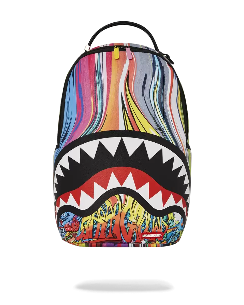 Dimensions: 18″ x 6″ x 11.5″ Front zipper pocket Side pockets Zippered Stash pocket Separate velour sunglass compartment Ergonomic mesh back padding Adjustable Straps for custom sizing Gold zippers with metal hardware Metal “Sprayground Authentic” badge Slide through back sleeve connects to carry-on luggage to free your hands