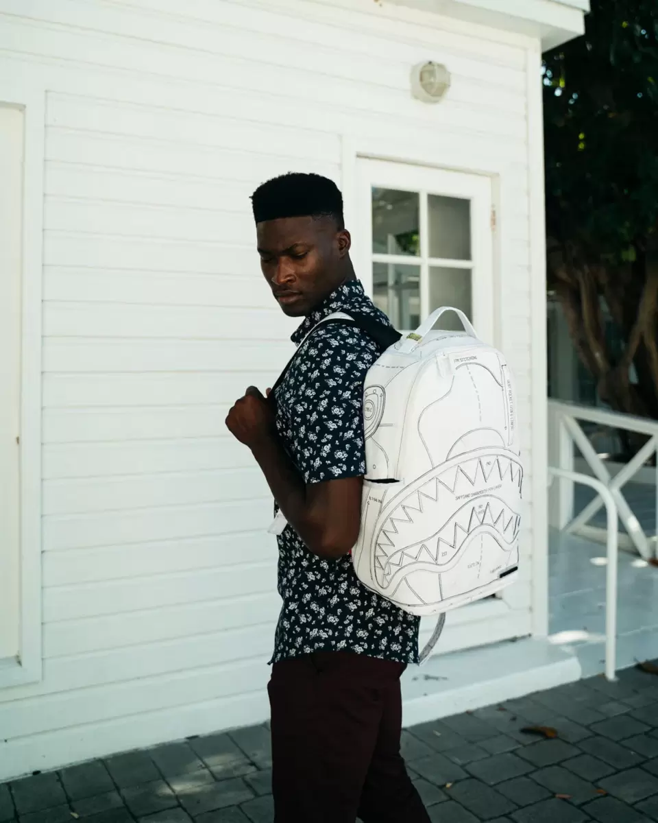 Dimensions: 18″ x 6″ x 11.5″ Front zipper pocket Side pockets Zippered Stash pocket Separate velour sunglass compartment Ergonomic mesh back padding Adjustable Straps for custom sizing Gunmetal zippers with metal hardware Metal “Sprayground Authentic” badge Slide through back sleeve connects to carry-on luggage to free your hands