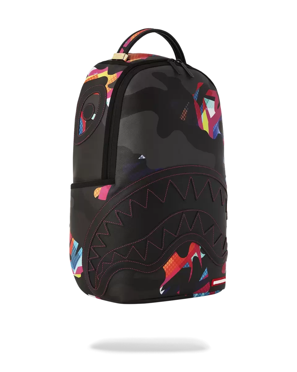 Dimensions: 18″ x 6″ x 11.5″ Front zipper pocket Side pockets Zippered Stash pocket Separate velour sunglass compartment Ergonomic mesh back padding Adjustable Straps for custom sizing Gold zippers with metal hardware Metal “Sprayground Authentic” badge Slide through back sleeve connects to carry-on luggage to free your hands