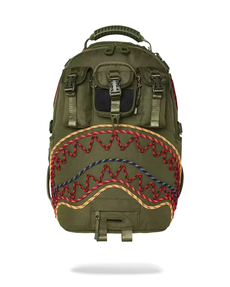 Dimensions: 18″ x 6″ x 11.5″ Front zipper pocket Side pockets Zippered Stash pocket Separate velour sunglass compartment Ergonomic mesh back padding Adjustable Straps for custom sizing Gold zippers with metal hardware Metal “Sprayground Authentic” badge Slide through back sleeve connects to carry-on luggage to free your hands