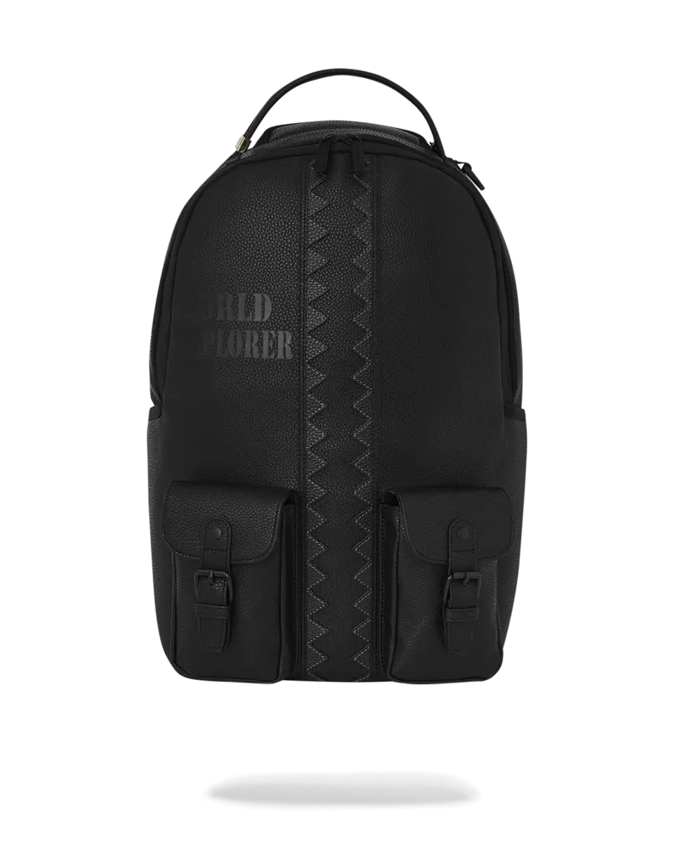 Monochromatic sleek backpack with front cargo pockets and cut & sewn vertical shark mouth design