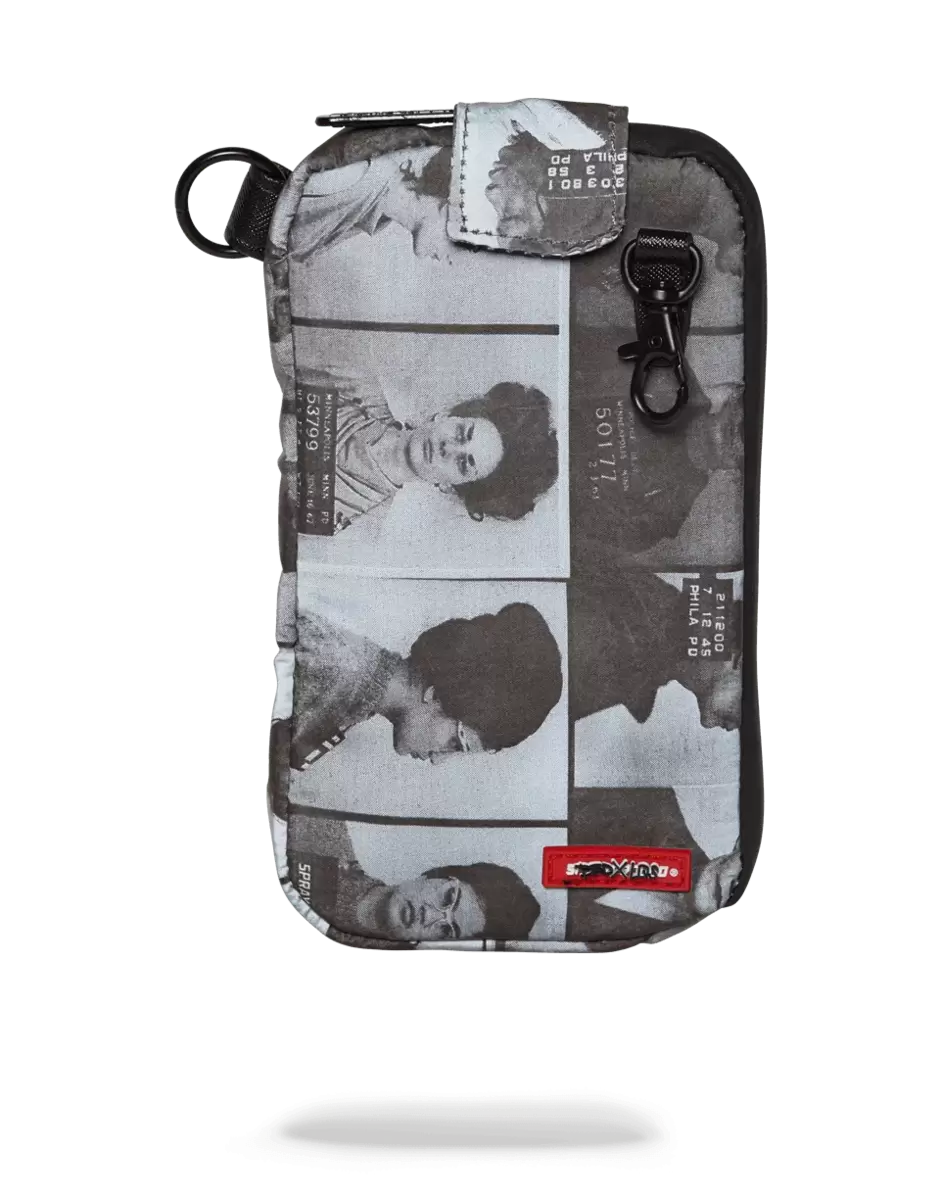 3M reflective small pouch keychain from LQS x DBD Collaboration for Scammer Collection. Featuring black and white printed mugshots of powerful women convicted for crimes throughout history. Features smell-proof pockets.