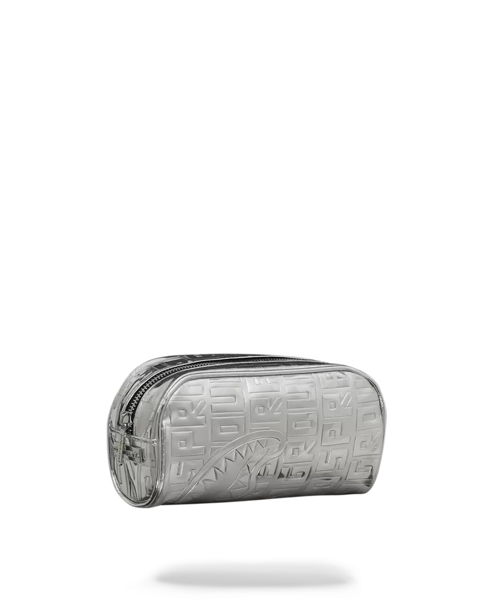Embossed Sprayground logo on Metallic Silver PU with mirror-like shine