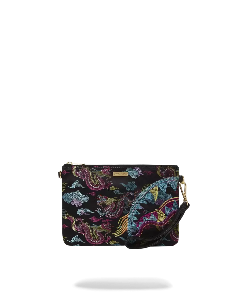 EMBROIDERED DRAGONS CROSSOVER CLUTCH