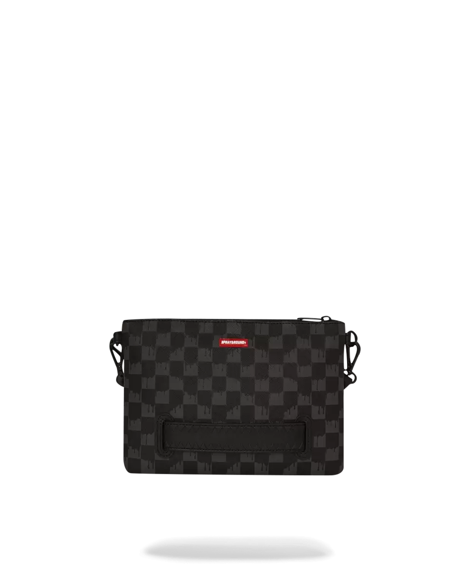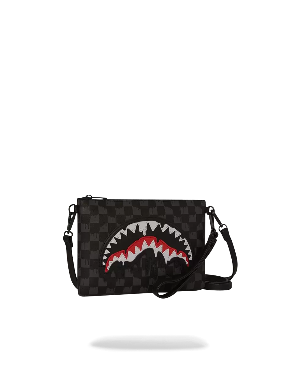 Convertible Clutch “Pouchette” Features a cut and sew drippy sharkmouth Pouch with removable wristlet strap, Handle on front panel, Zip Closure1 interior pocket