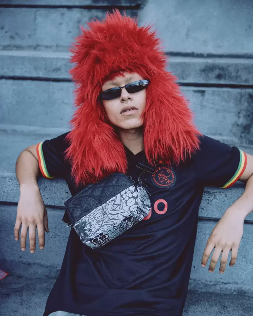 1/2 Quilted & 1/2 Printed PVC with Cut & Sewn shark mouth details and matte black hardware