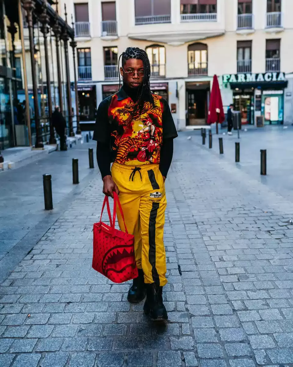 Dimensions 19, x 6.5, x 11.5, Top zipper opening, Top double handle, Sprayground keychain, Gold zippers with metal hardware Interior Cotton printed lining