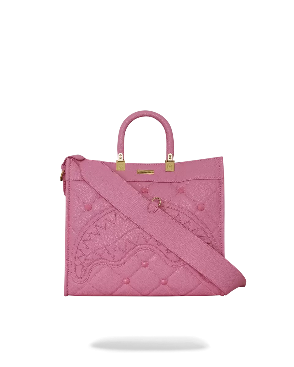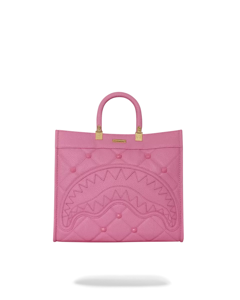Pink quilted with bear face studs. Pink enamel & gold hardware details