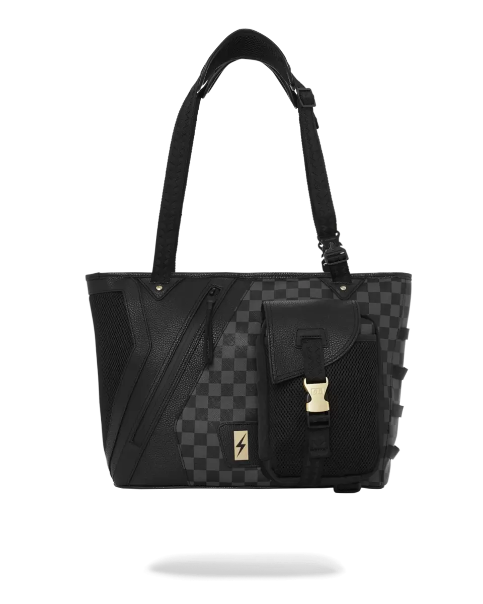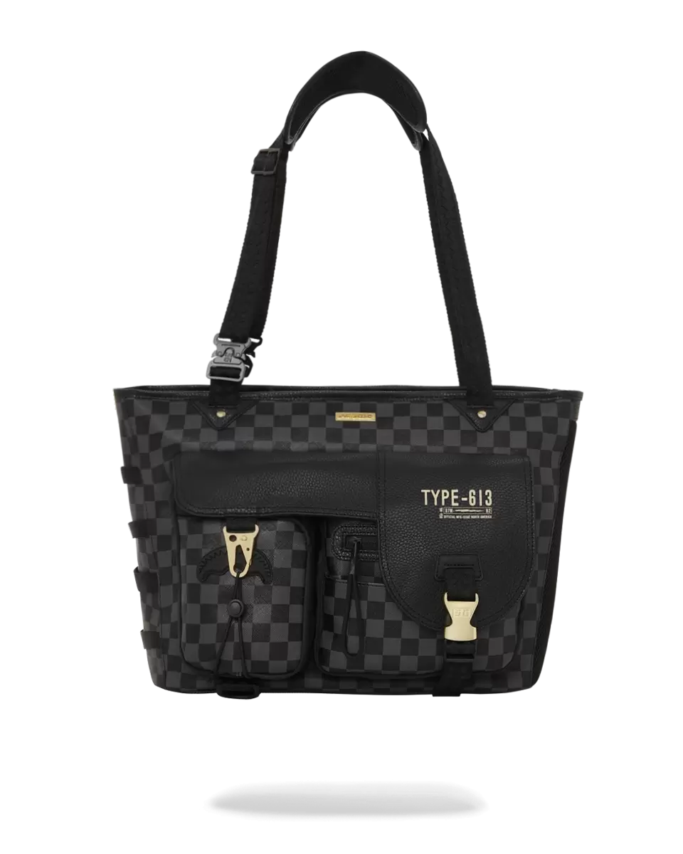 Your over the shoulder bag doesn’t have to be boring anymore. Stand out with the printed Sprayground Totes. Multi cargo pockets Matte gold hardware Exterior Dim