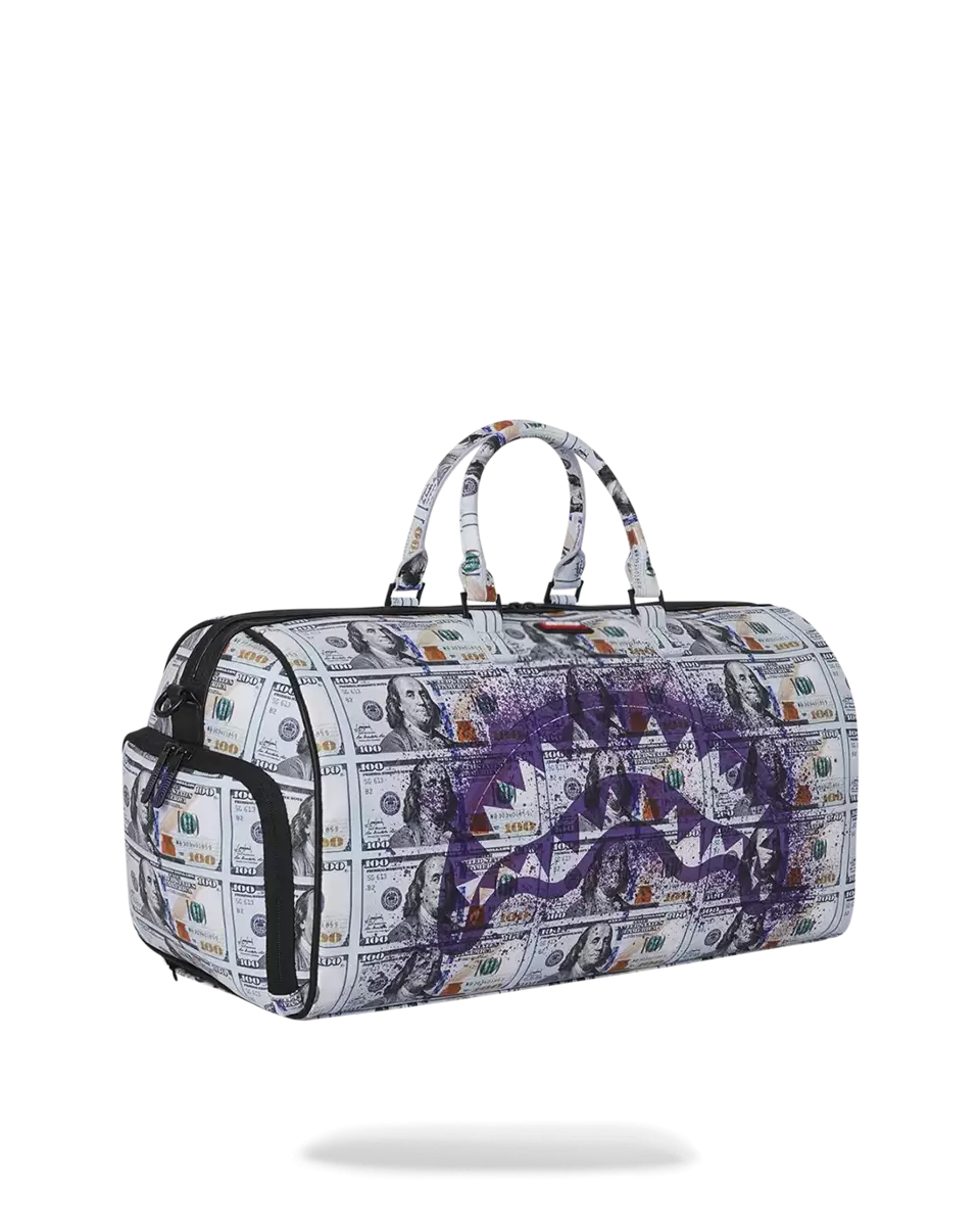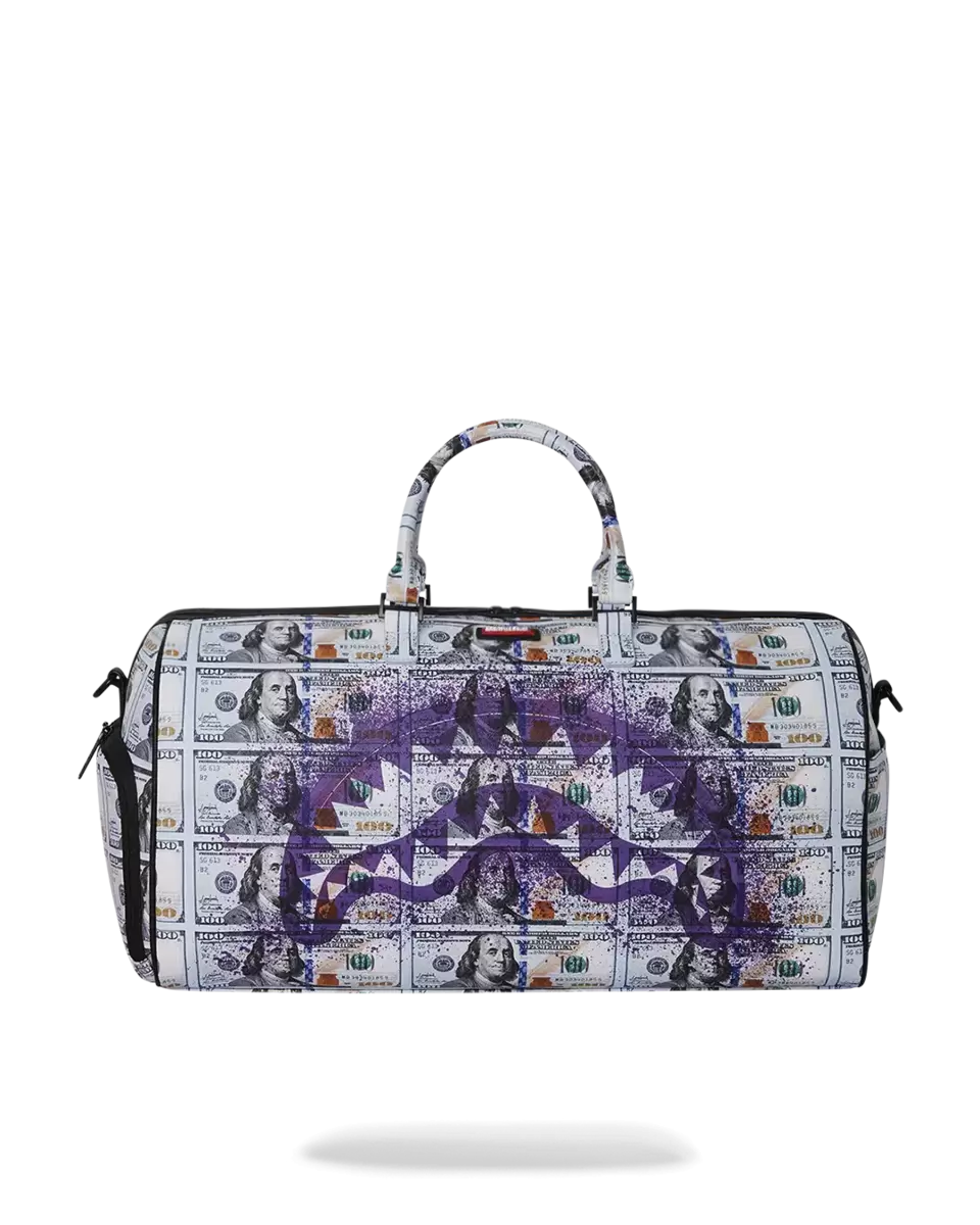 Dimensions: 20″ x 10″ x 10.75″ Metal zipper pocket Back Zippers Zippered sneaker pocket gold zippers Adjustable Straps for custom sizing Metal Zippers with Metal Hardware bag of Sprayground money