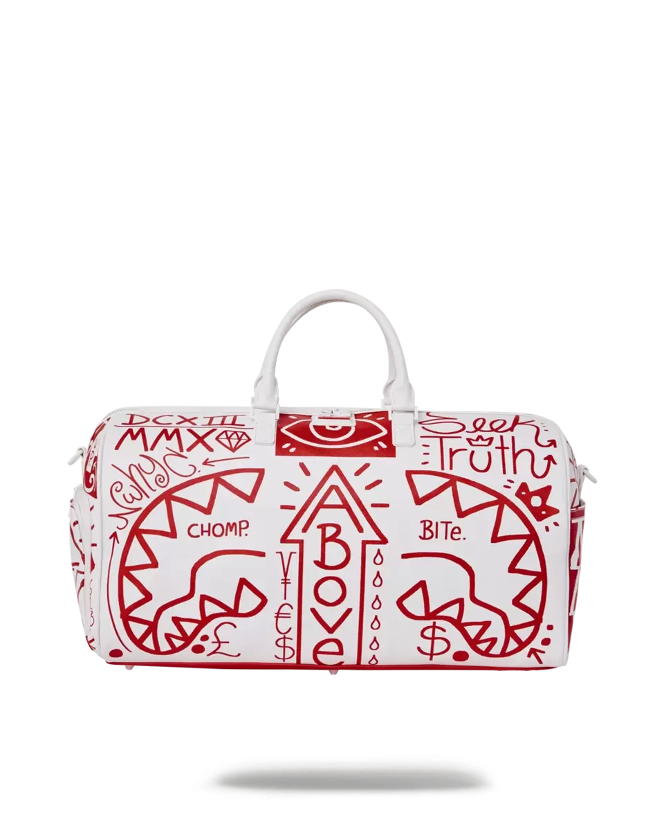 Dimensions: 20″ x 10″ x 10.75″ Metal zipper pocket Back Zippers Zippered sneaker pocket gold zippers Adjustable Straps for custom sizing Metal Zippers with Metal Hardware bag of Sprayground money