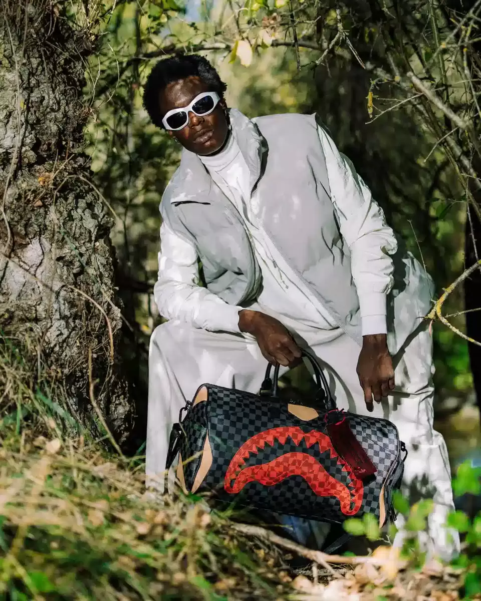 Dimensions: 20″ x 10″ x 10.75″ Metal zipper pocket Back Zippers Zippered sneaker pocket gold zippers Adjustable Straps for custom sizing Metal Zippers with Metal Hardware bag of Sprayground money
