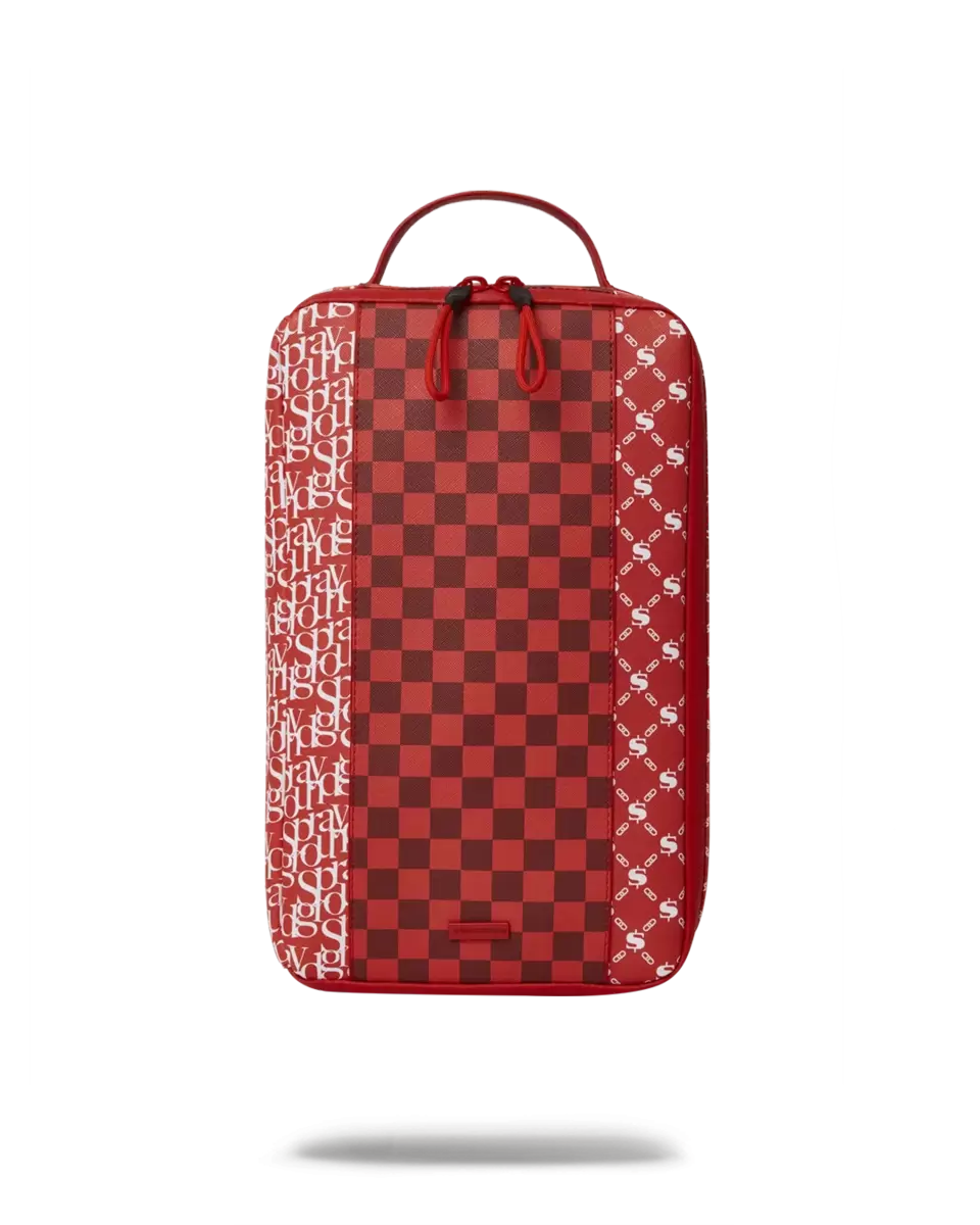 H 14” x W 8.5” X D5” Top Handle Zipper closure Can fit up to a size 13 sneaker Fabric Durable Faux Leather water-resistant fabric