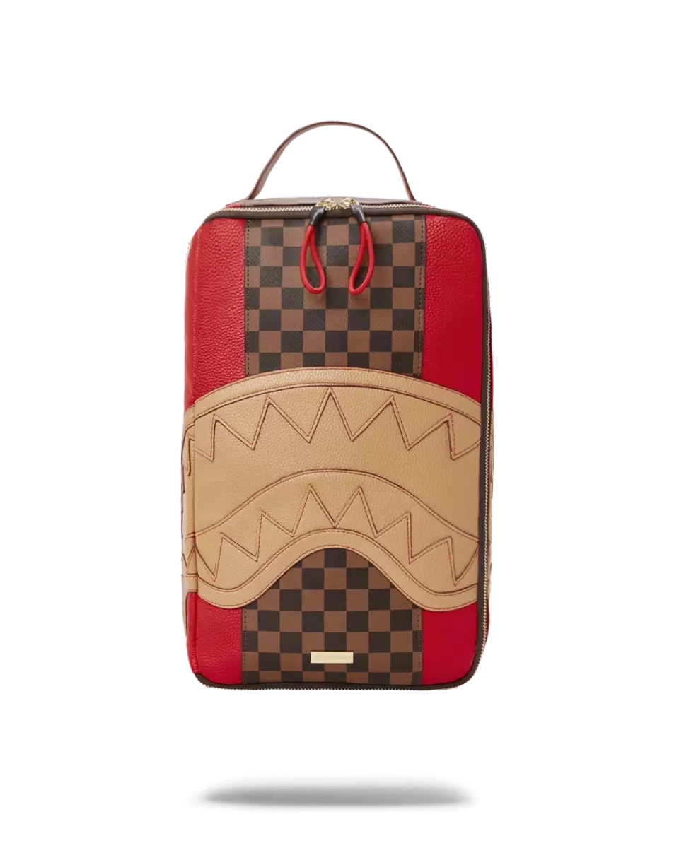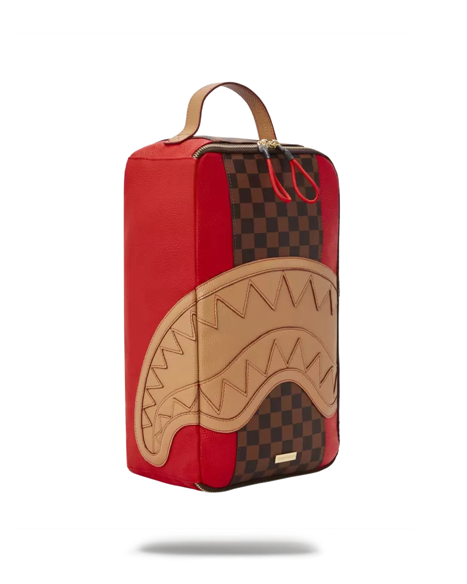 H 14” x W 8.5” X D5” Top Handle Zipper closure Can fit up to a size 13 sneaker Fabric Durable Faux Leather water-resistant fabric