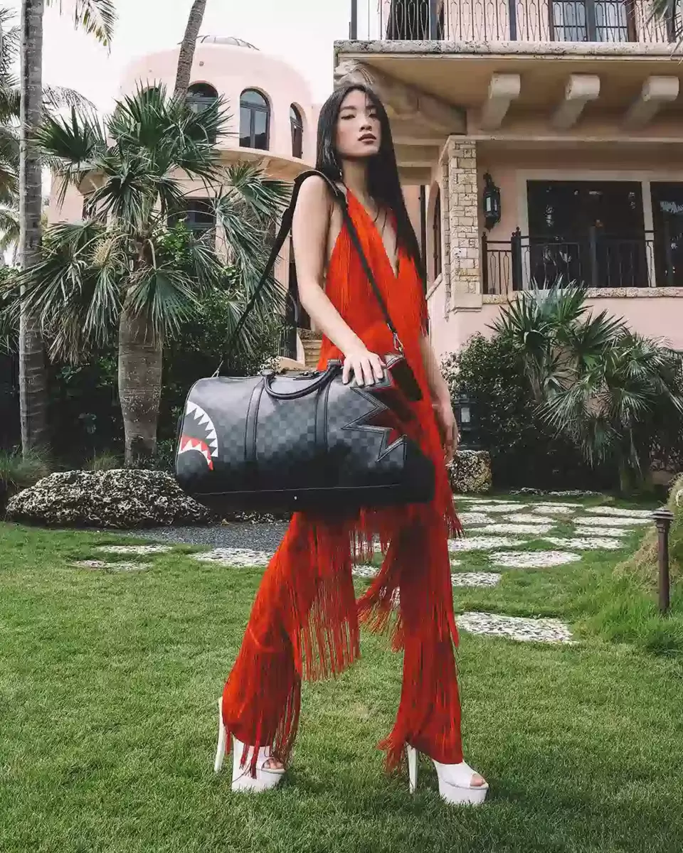 Dimensions: 20″ x 10″ x 10.75″ Metal zipper pocket Back Zippers Zippered sneaker pocket gold zippers Adjustable Straps for custom sizing Metal Zippers with Metal Hardware bag of Sprayground money