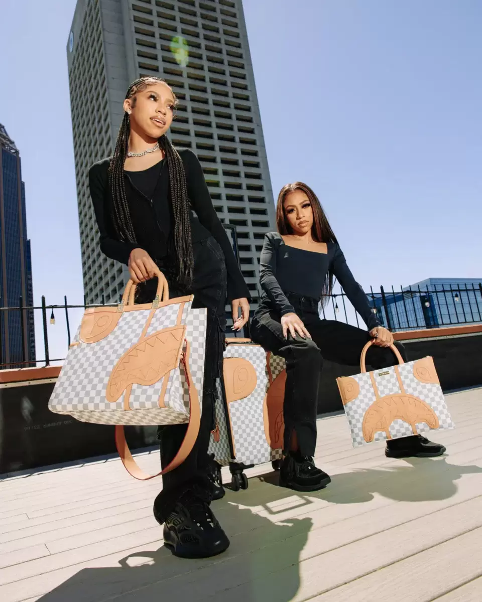 100 % Polyvinyl Chloride Shell – AKA 100% Faux Leather H: 19.5” x W: 14.5“x D: 7” YKK® Zipper FrameFront Exterior PocketEmbossed LogoFaux leather top & side handles 4 Dual Spinning Recessed WheelsTelescope Adjustable Handle – 2 positions INTERIOR:Multiple Pockets and Compartments for Maximum Organization3 Zippered Pocket4 Mesh PocketsShark Print Satin LiningMesh organizer pockets Fastening StrapsNylon Zippers with Metal Hardware